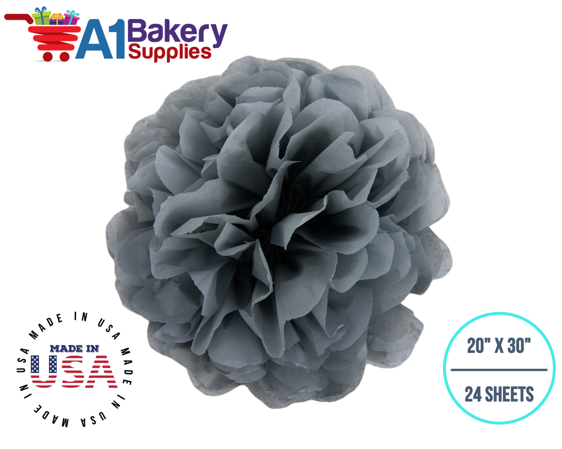 Gray Tissue Paper Squares, Bulk 24 Sheets, Premium Gift Wrap and Art Supplies for Birthdays, Holidays, or Presents by A1BakerySupplies, Small 20 Inch x 30 Inch