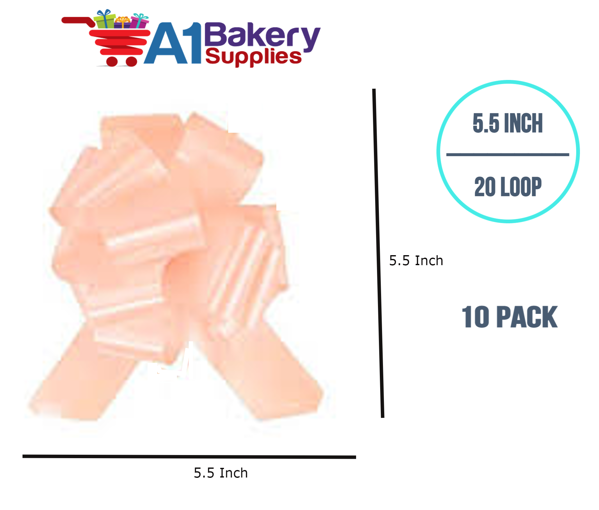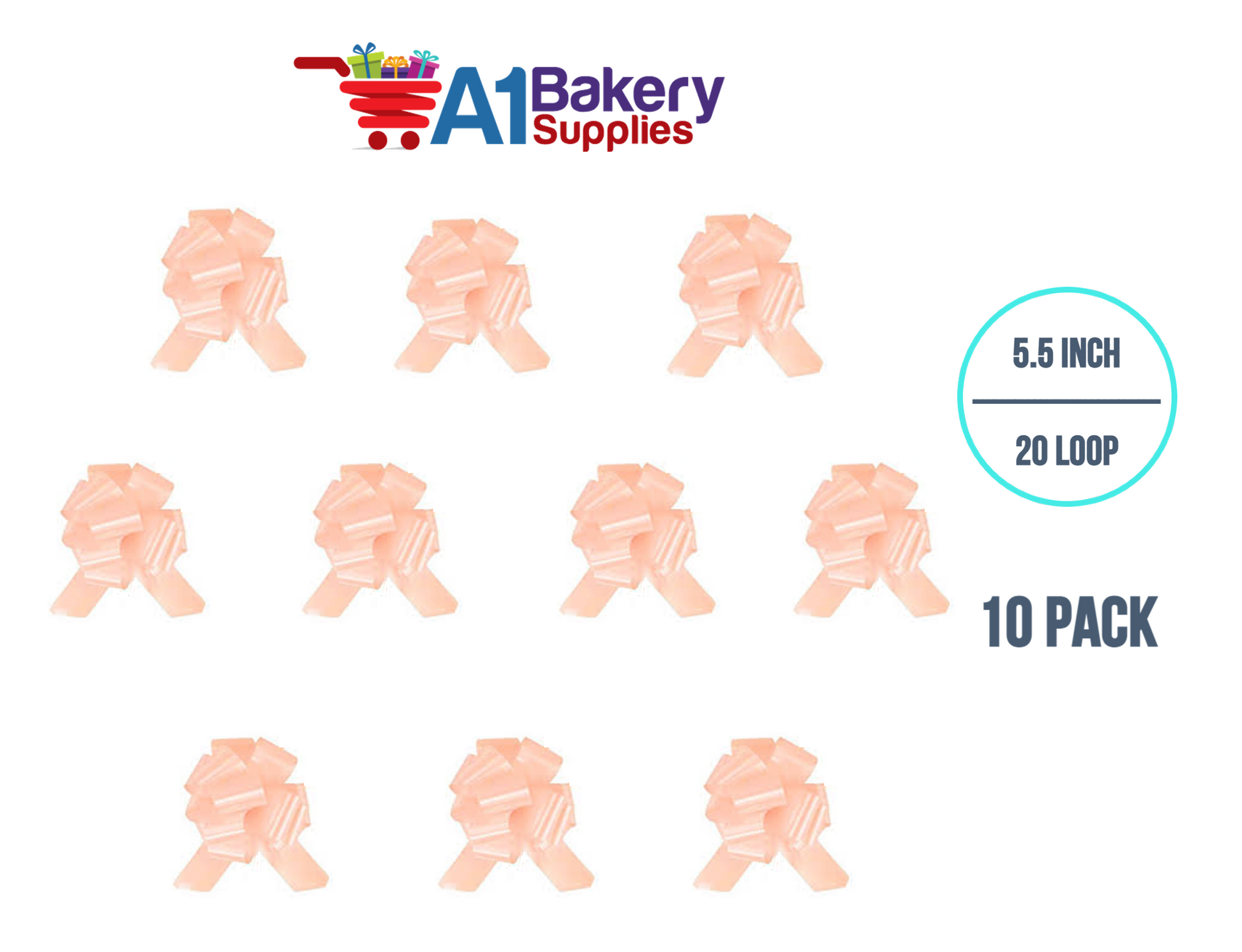 A1BakerySupplies 10 Pieces Pull Bow for Gift Wrapping Gift Bows Pull Bow With Ribbon for Wedding Gift Baskets, 5.5 Inch 20 Loop in Peach Color