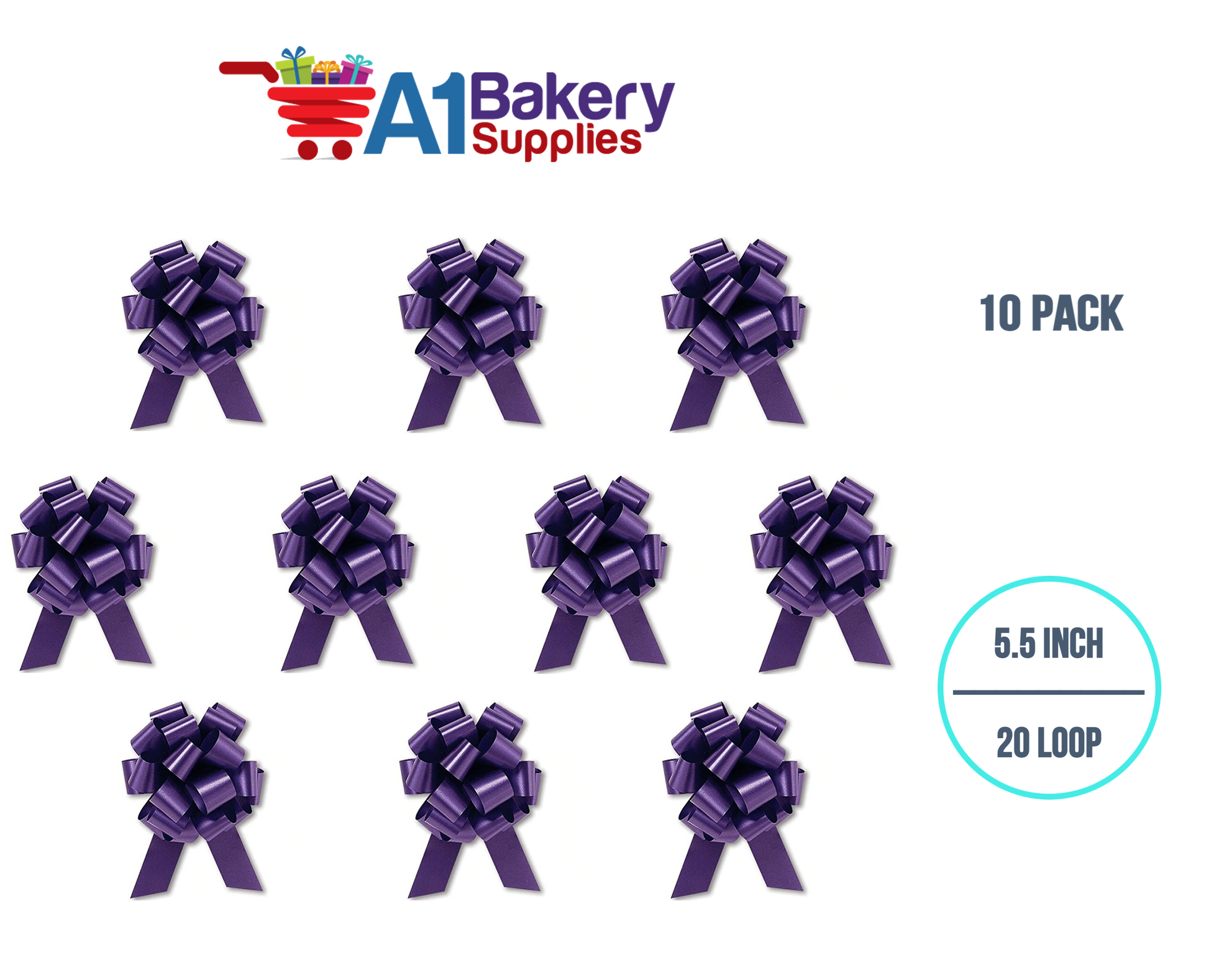 A1BakerySupplies 10 Pieces Pull Bow for Gift Wrapping Gift Bows Pull Bow With Ribbon for Wedding Gift Baskets, 5.5 Inch 20 Loop in Purple Color