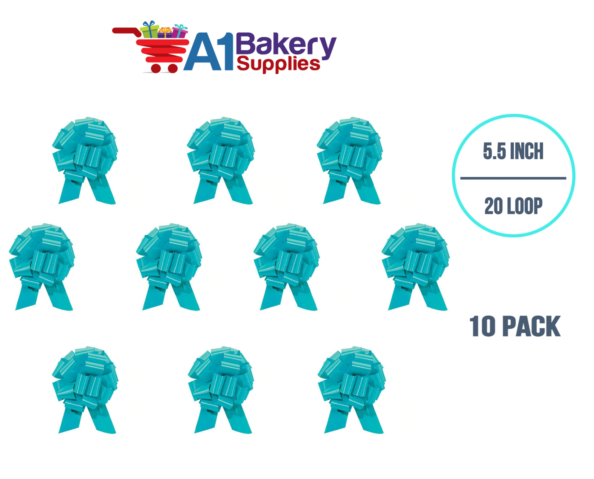A1BakerySupplies 10 Pieces Pull Bow for Gift Wrapping Gift Bows Pull Bow With Ribbon for Wedding Gift Baskets, 5.5 Inch 20 Loop in Turquoise Color