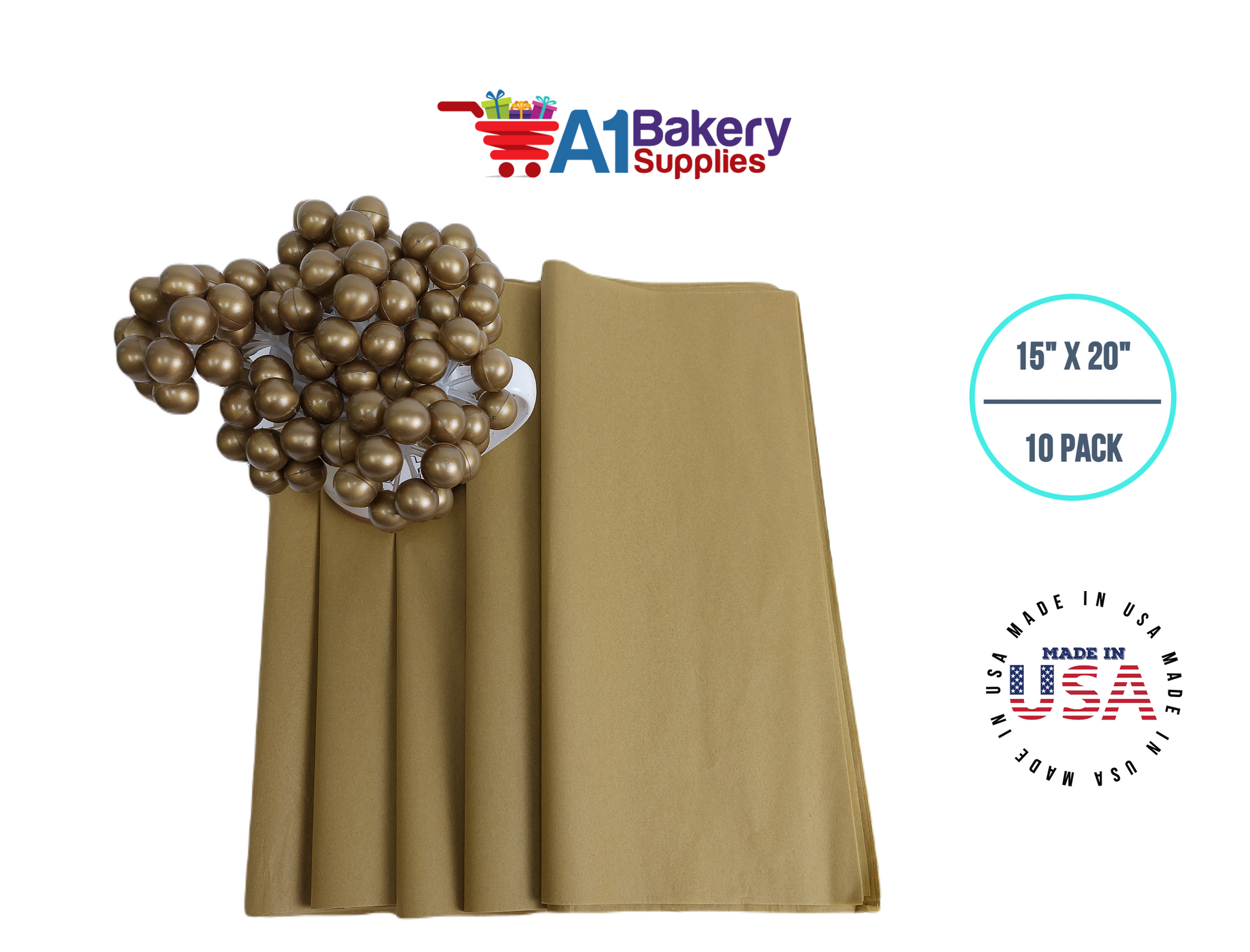 Antique Gold Tissue Paper Squares, Bulk 10 Sheets, Premium Gift Wrap and Art Supplies for Birthdays, Holidays, or Presents by A1BakerySupplies, Large 15 Inch x 20 Inch