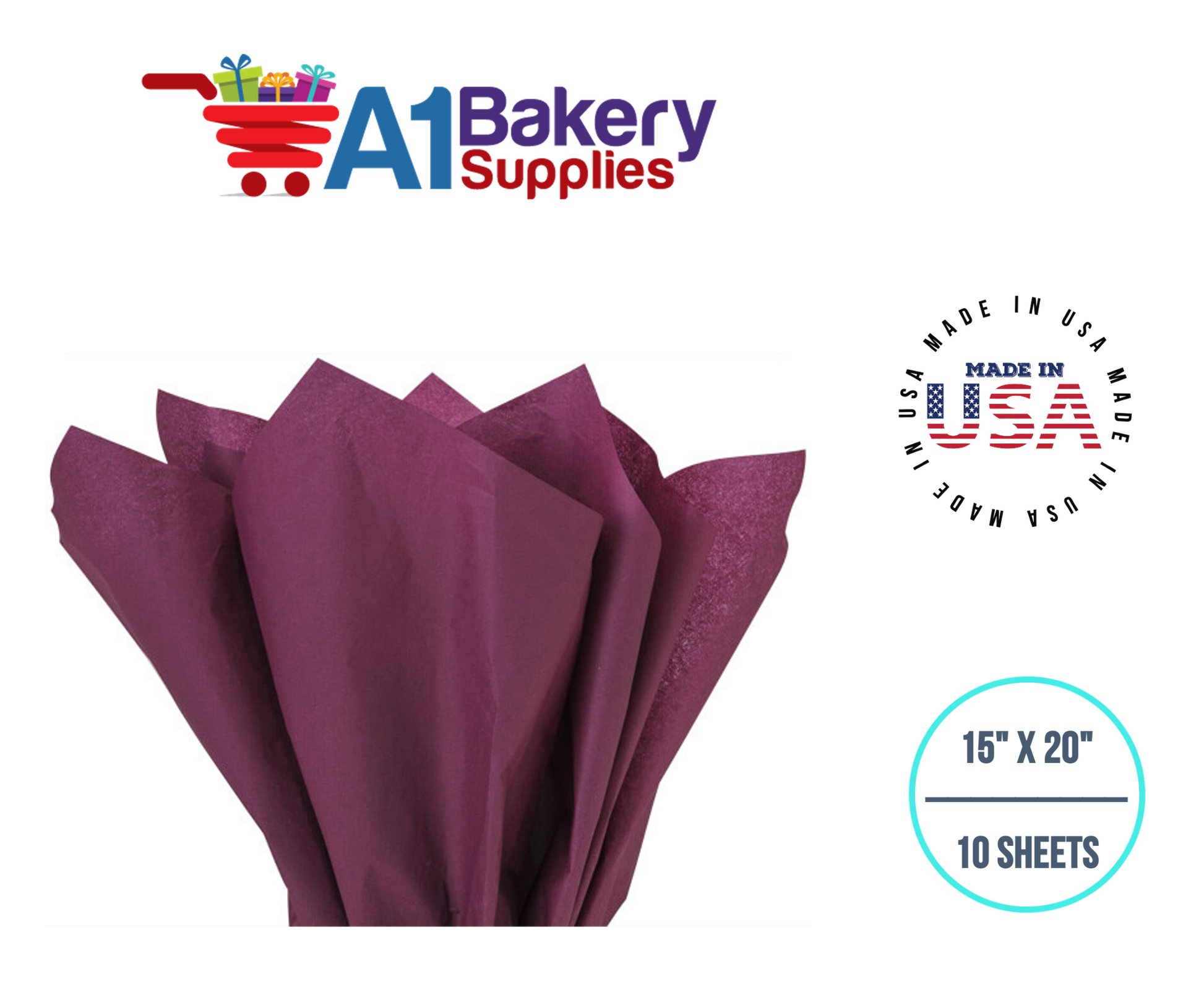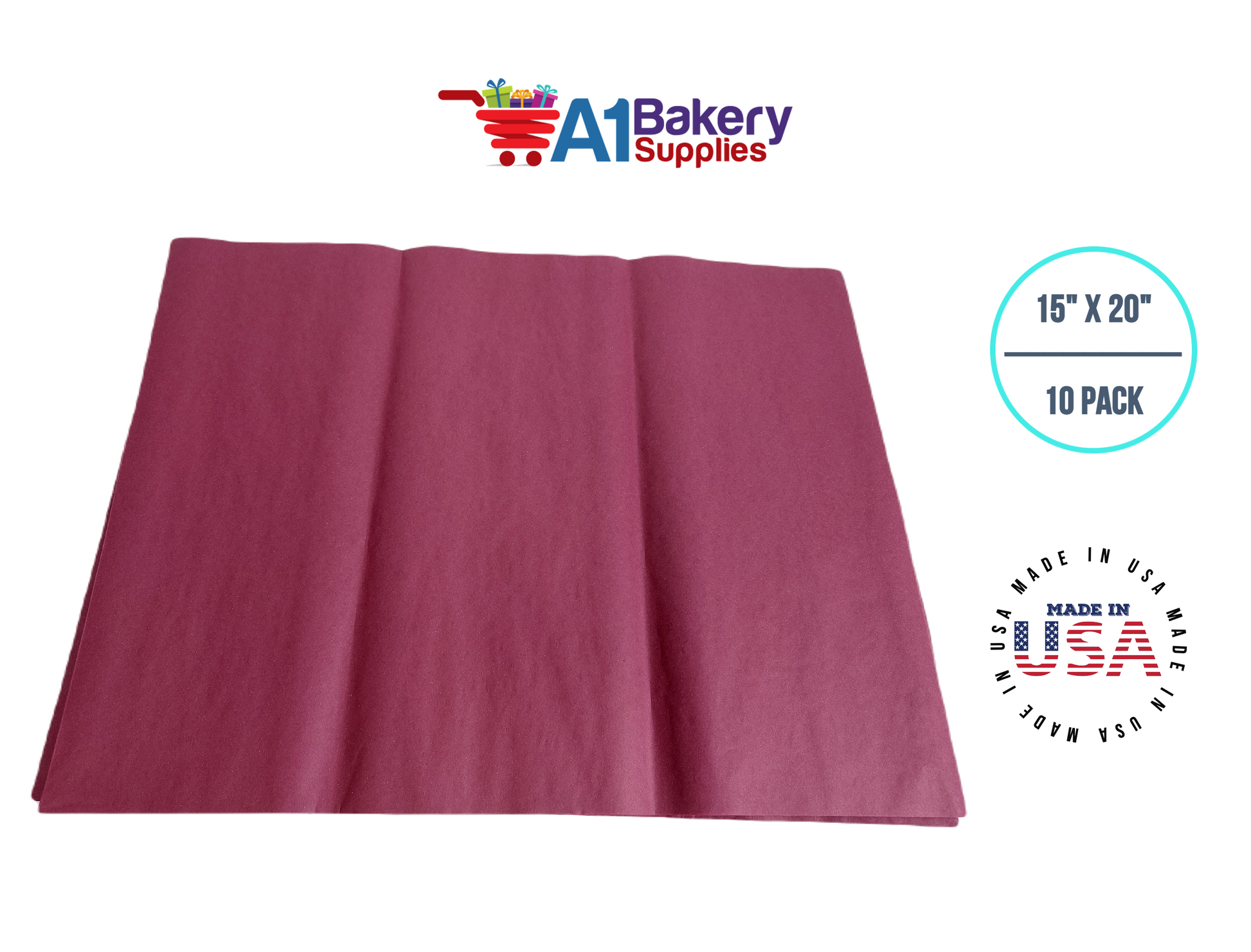 Burgundy Tissue Paper Squares, Bulk 10 Sheets, Premium Gift Wrap and Art Supplies for Birthdays, Holidays, or Presents by A1BakerySupplies, Large 15 Inch x 20 Inch