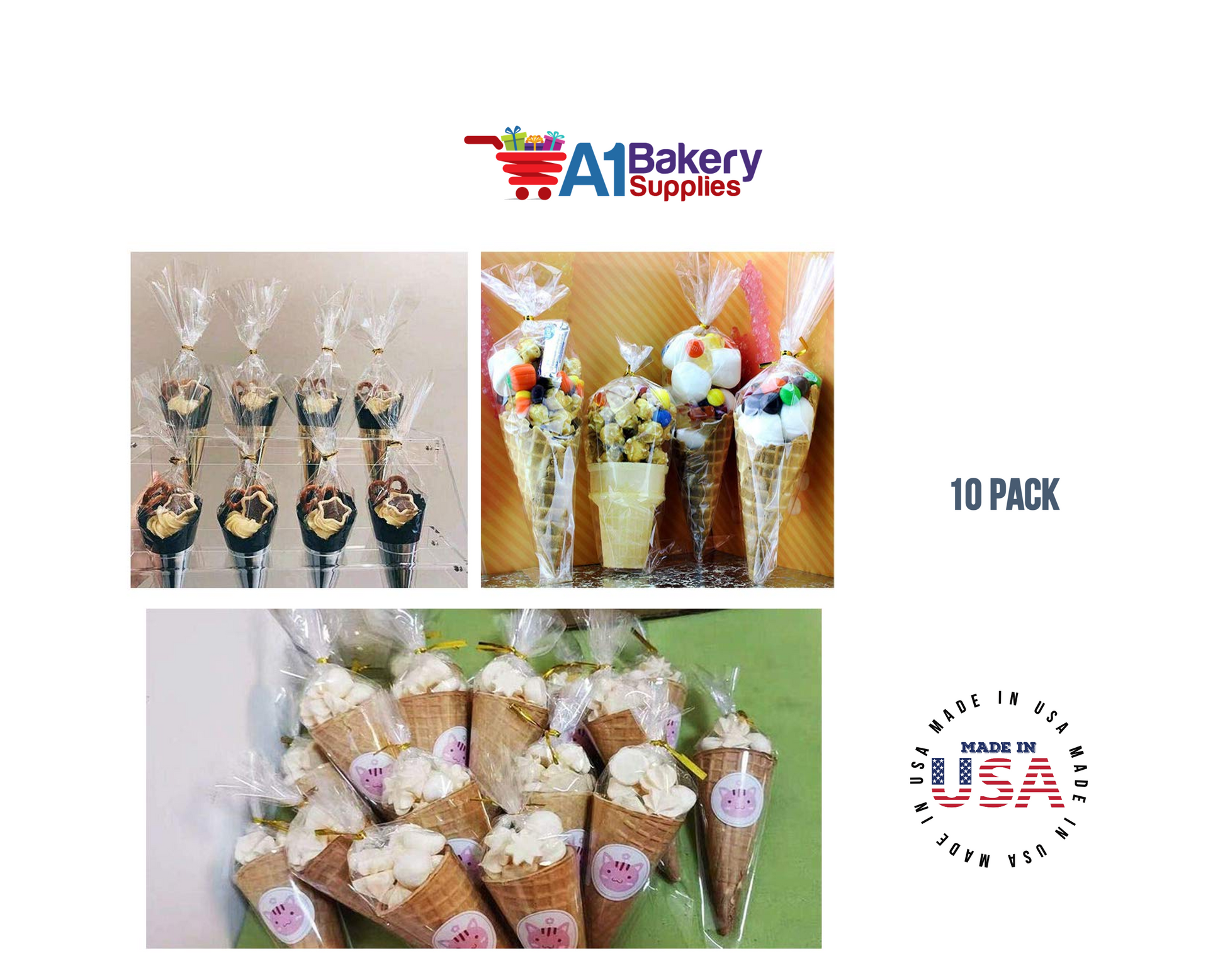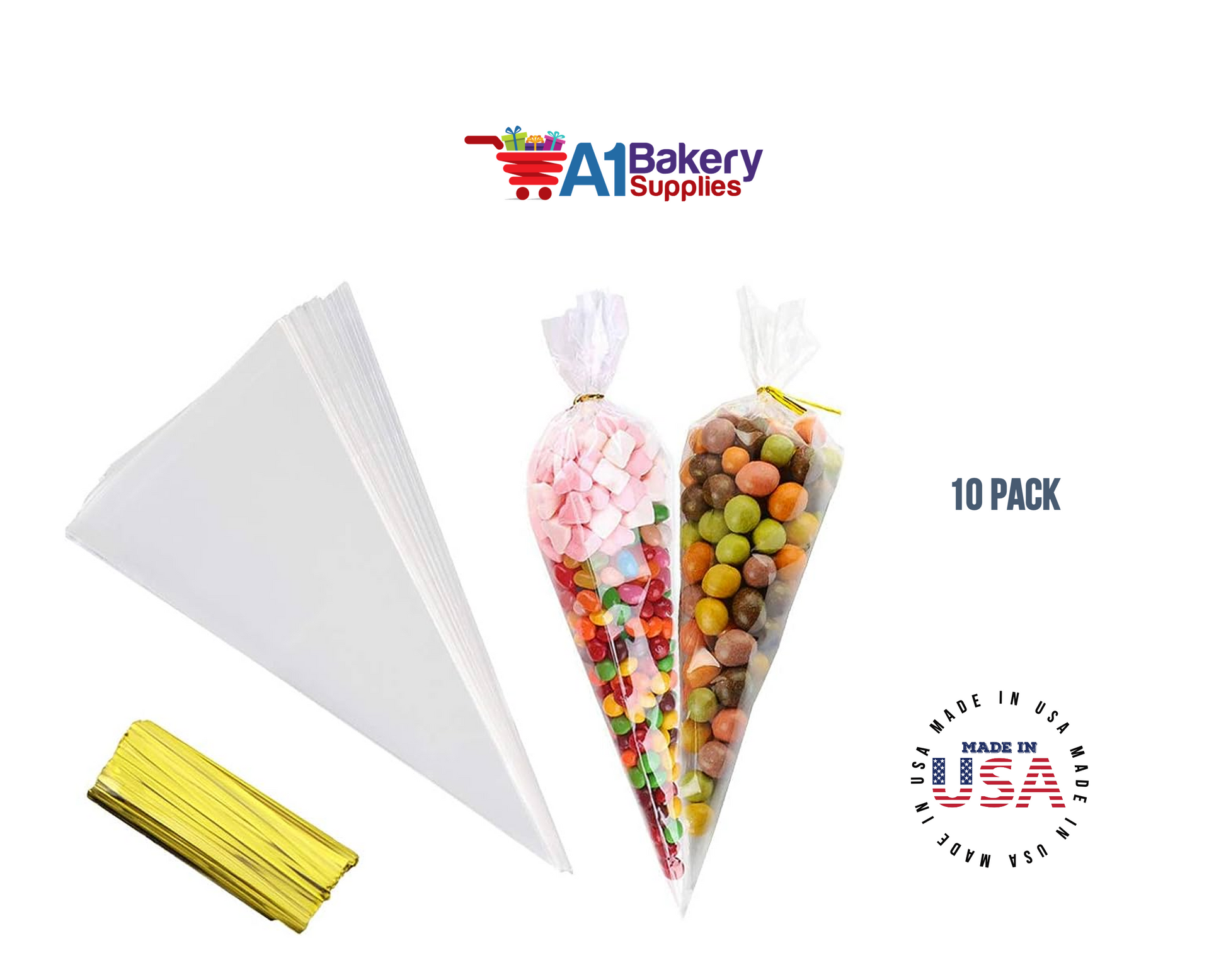 Clear Cellophane Cone Bags for Treat & Favor 6 Inch X 10 Inch 10 Pack by A1 Bakery Supplies