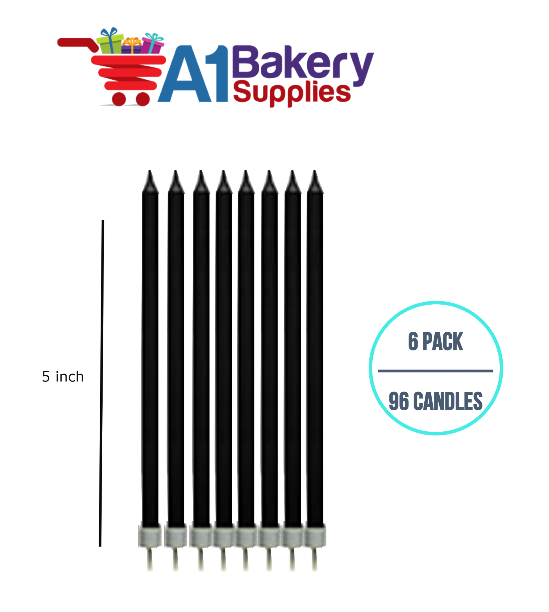 - Package Description: Party Shape Candles- Black W/Holders 96 Candles in 6 pack, and the size is 5 inch