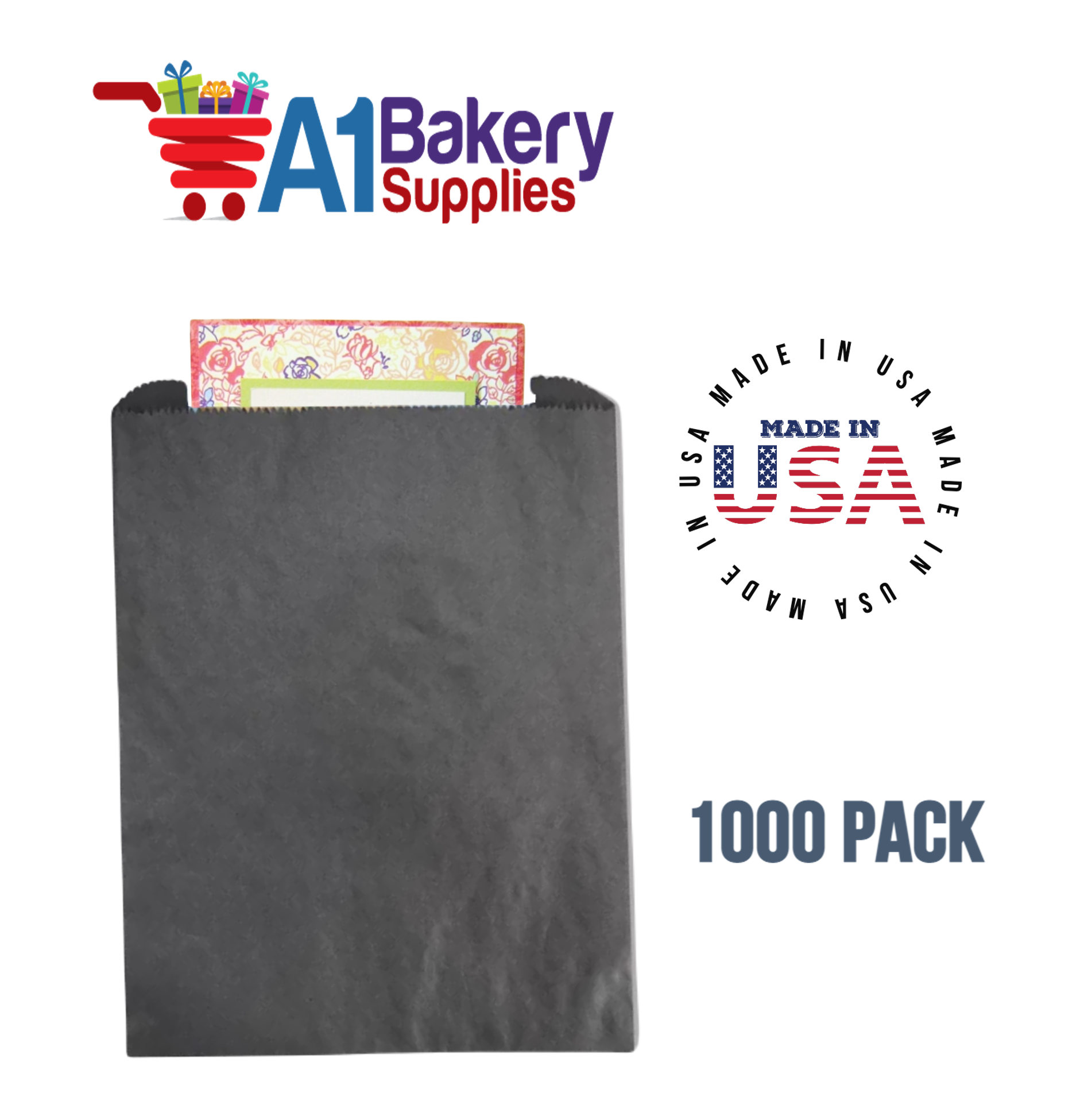 - Each Black Flat Merchandise bag measures 12 x 15 inches. Each set includes 1000 pack Black paper.