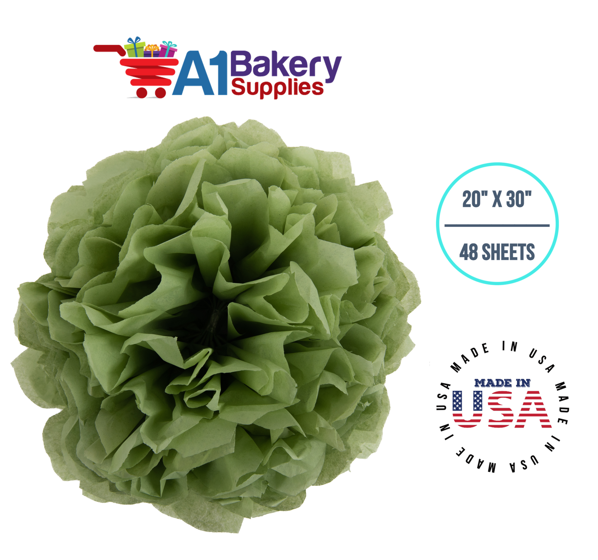 Sage Tissue Paper Squares, Bulk 48 Sheets, Premium Gift Wrap and Art Supplies for Birthdays, Holidays, or Presents by A1BakerySupplies, Medium 20 Inch x 30 Inch