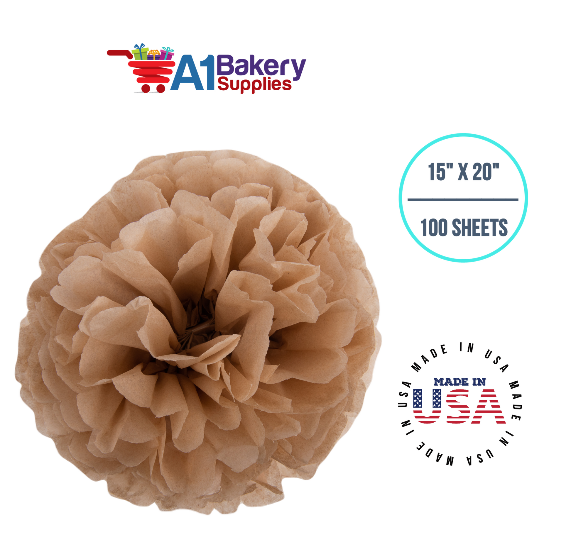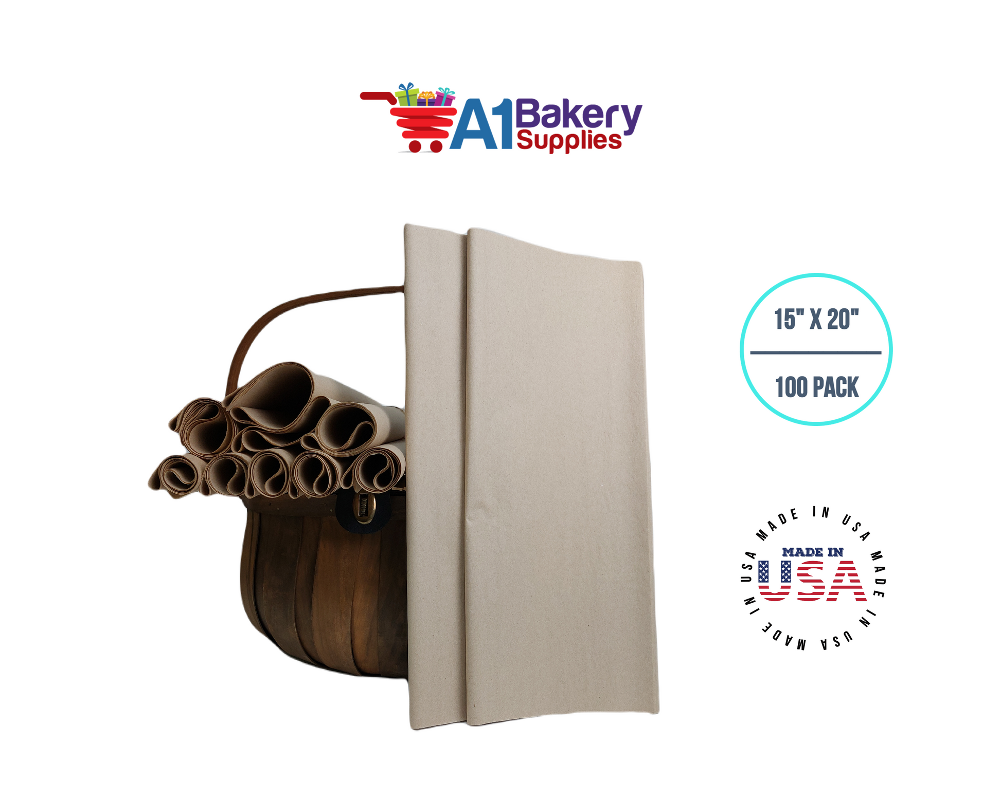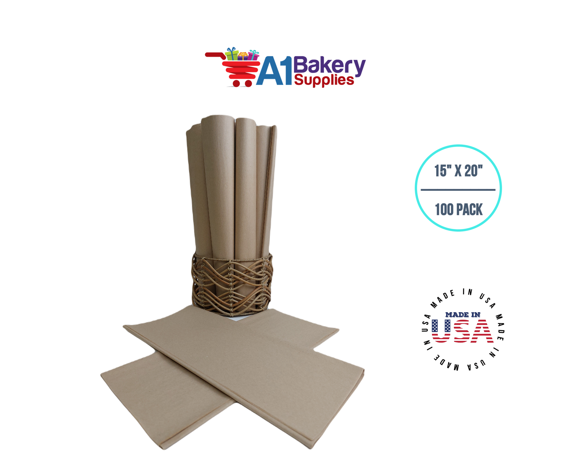Desert Tan Tissue Paper Squares, Bulk 100 Sheets, Premium Gift Wrap and Art Supplies for Birthdays, Holidays, or Presents by A1BakerySupplies, Medium 15 Inch x 20 Inch