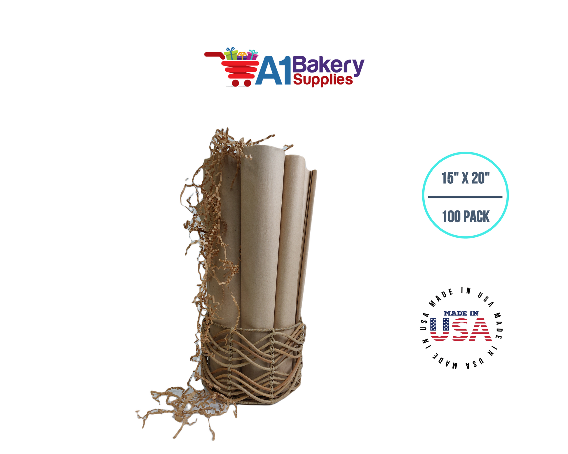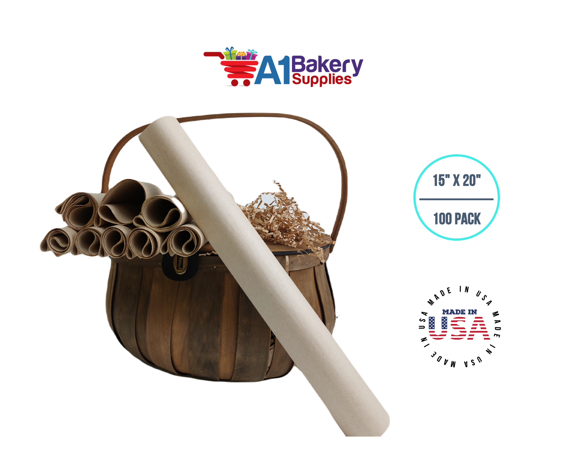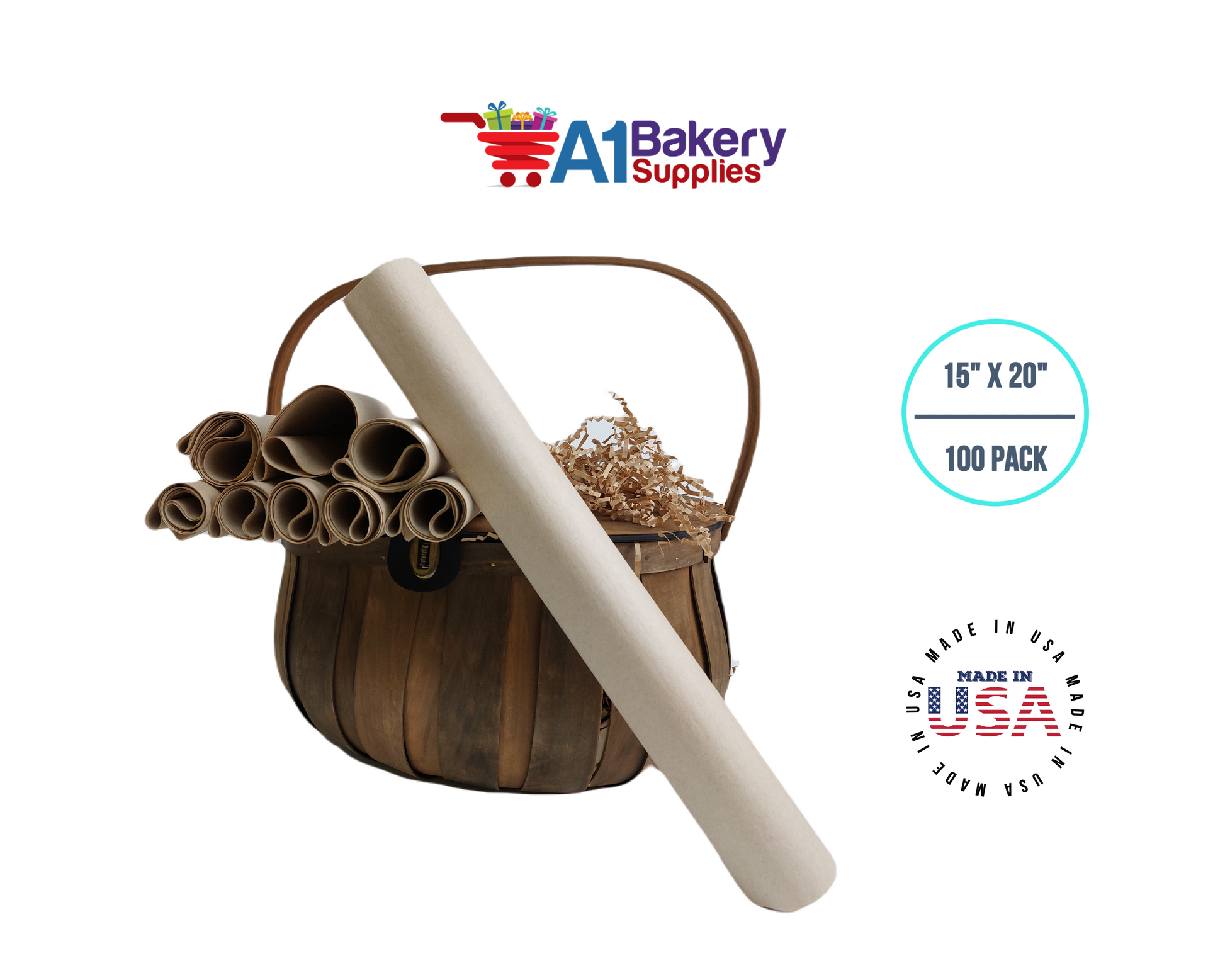 Desert Tan Tissue Paper Squares, Bulk 100 Sheets, Premium Gift Wrap and Art Supplies for Birthdays, Holidays, or Presents by A1BakerySupplies, Medium 15 Inch x 20 Inch