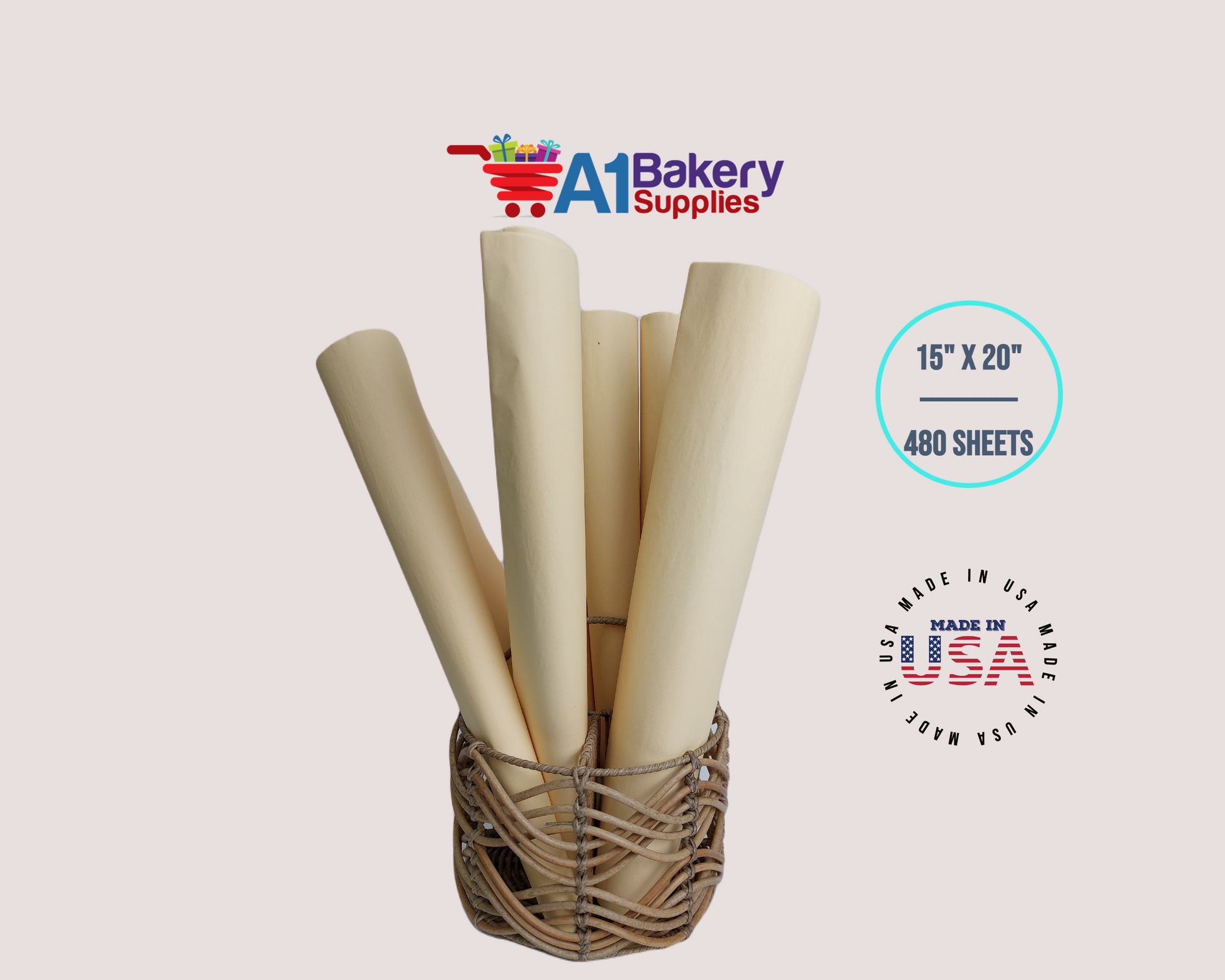 French Vanilla Tissue Paper Squares, Bulk 480 Sheets, Premium Gift Wrap and Art Supplies for Birthdays, Holidays, or Presents by A1BakerySupplies, Large 15 Inch x 20 Inch