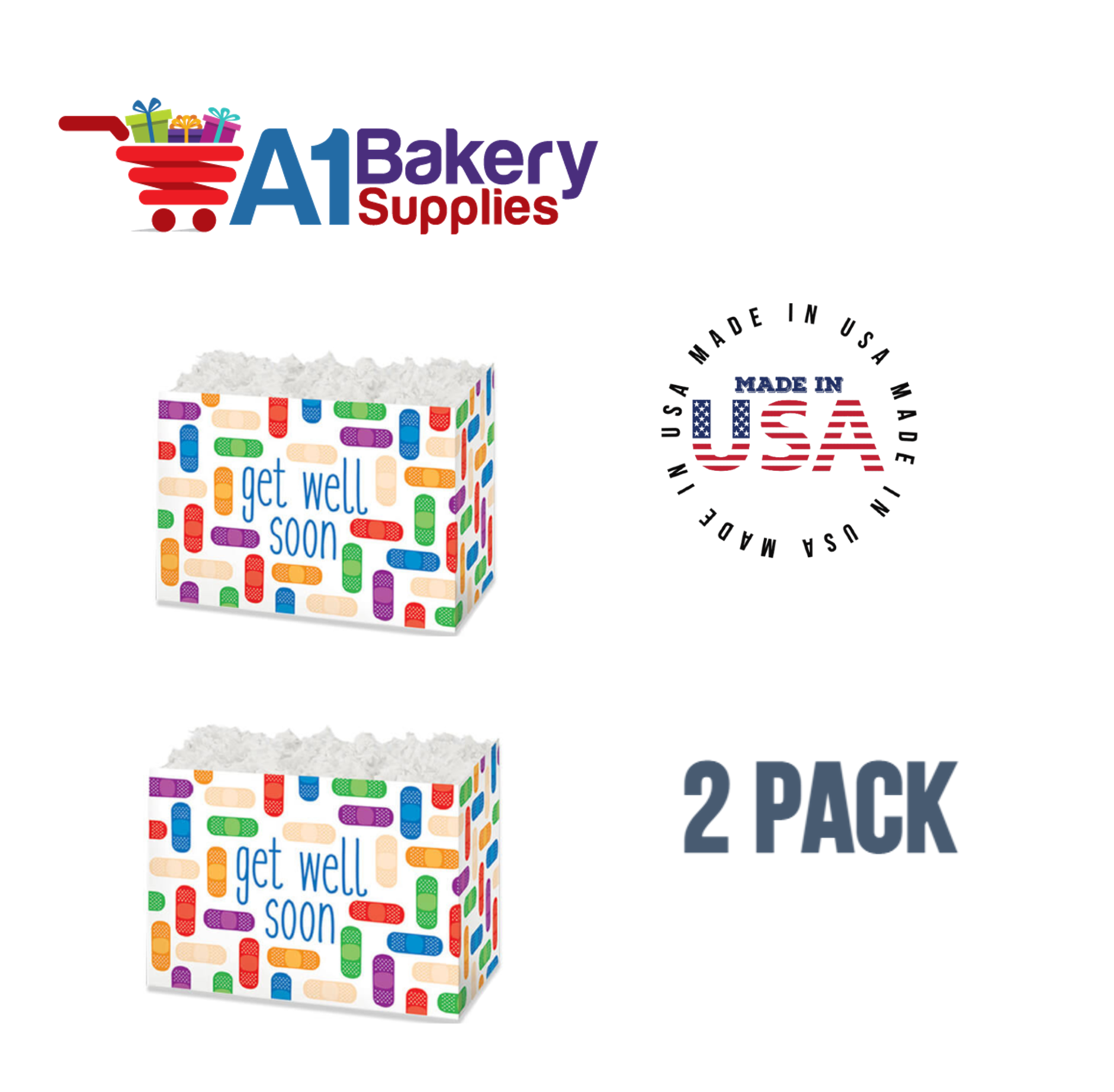 - Each Box comes with totally 2 Pack Small Boxes . Each Get Well Soon Basket Box Measures 6.75 (Length) x 4 (Width) x 5 (Height)