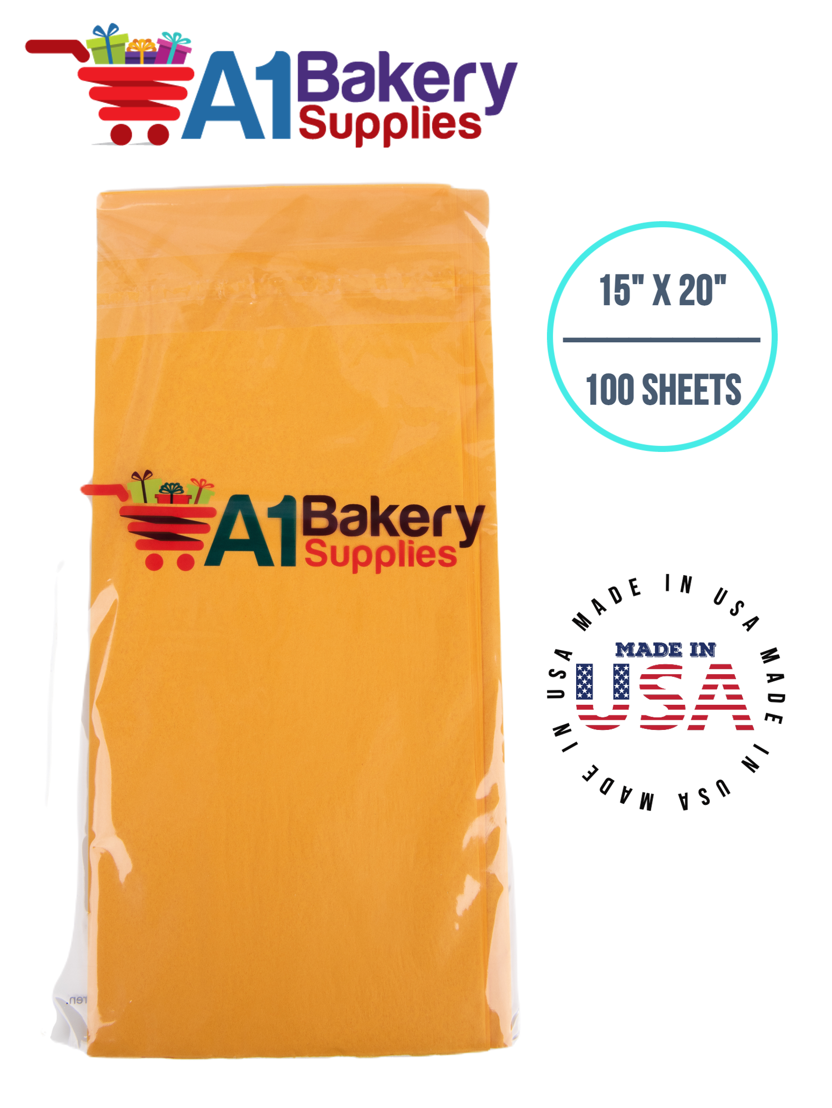 Goldenrod Tissue Paper Squares, Bulk 100 Sheets, Premium Gift Wrap and Art Supplies for Birthdays, Holidays, or Presents by A1BakerySupplies, Medium 15 Inch x 20 Inch
