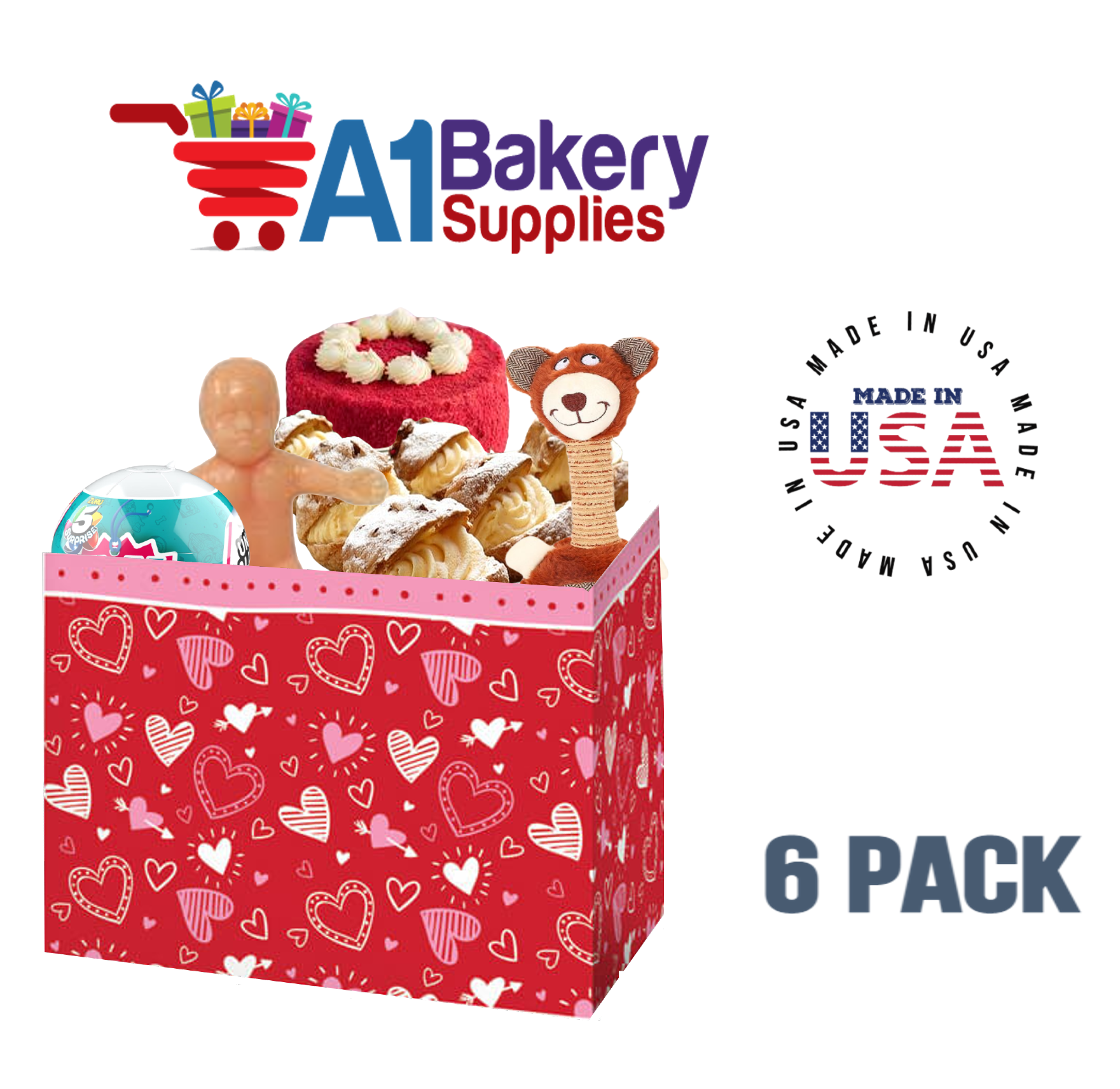 - Each Box comes with totally 6 Pack Large Boxes . Each Happy Hearts Basket Box Measures 10.25 (Length) x 6 (Width) x 7.5 (Height)