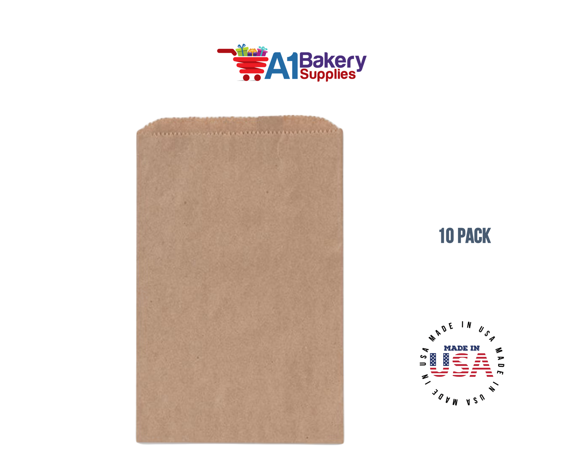 Kraft Brown Flat Paper Merchandise Bags 10 pack by A1 Bakery Supplies (12x15)