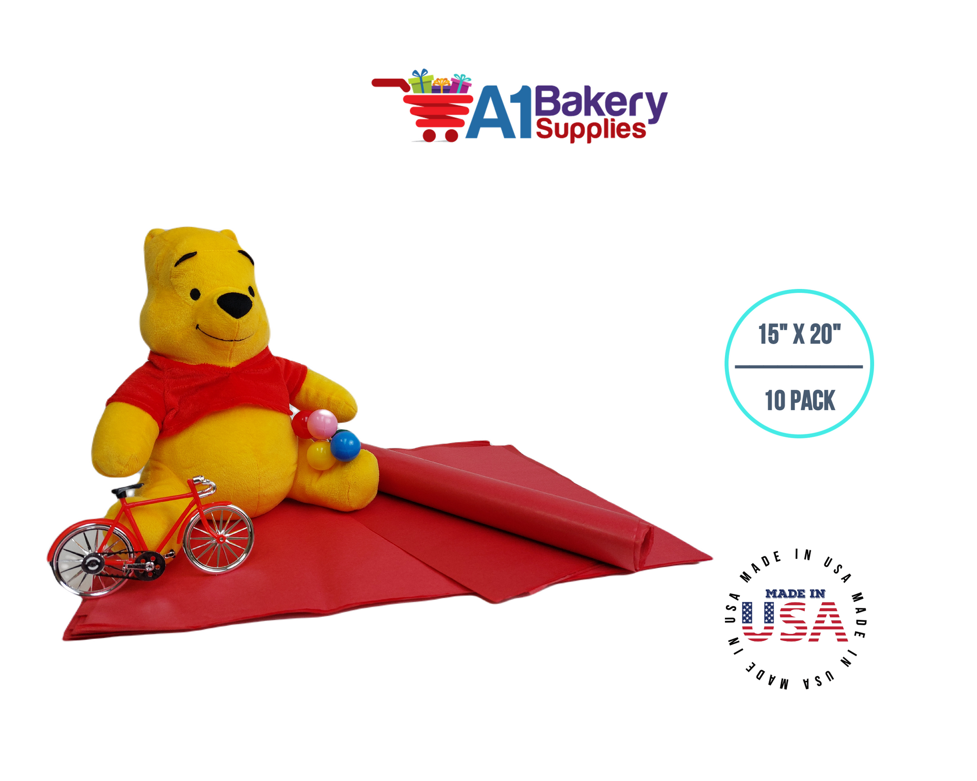 Red Tissue Paper Squares, Bulk 10 Sheets, Premium Gift Wrap and Art Supplies for Birthdays, Holidays, or Presents by A1BakerySupplies, Large 15 Inch x 20 Inch