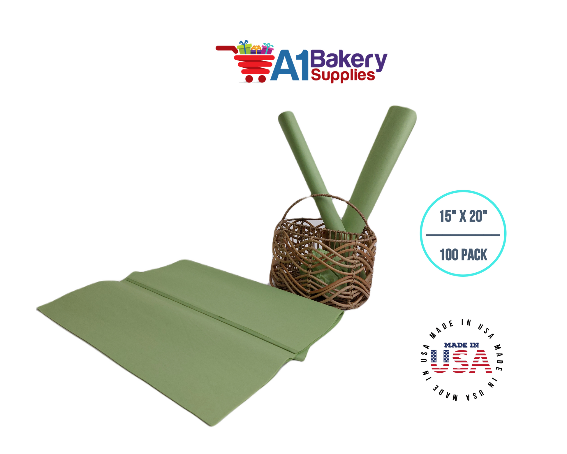 Sage Tissue Paper Squares, Bulk 100 Sheets, Premium Gift Wrap and Art Supplies for Birthdays, Holidays, or Presents by A1BakerySupplies, Medium 15 Inch x 20 Inch