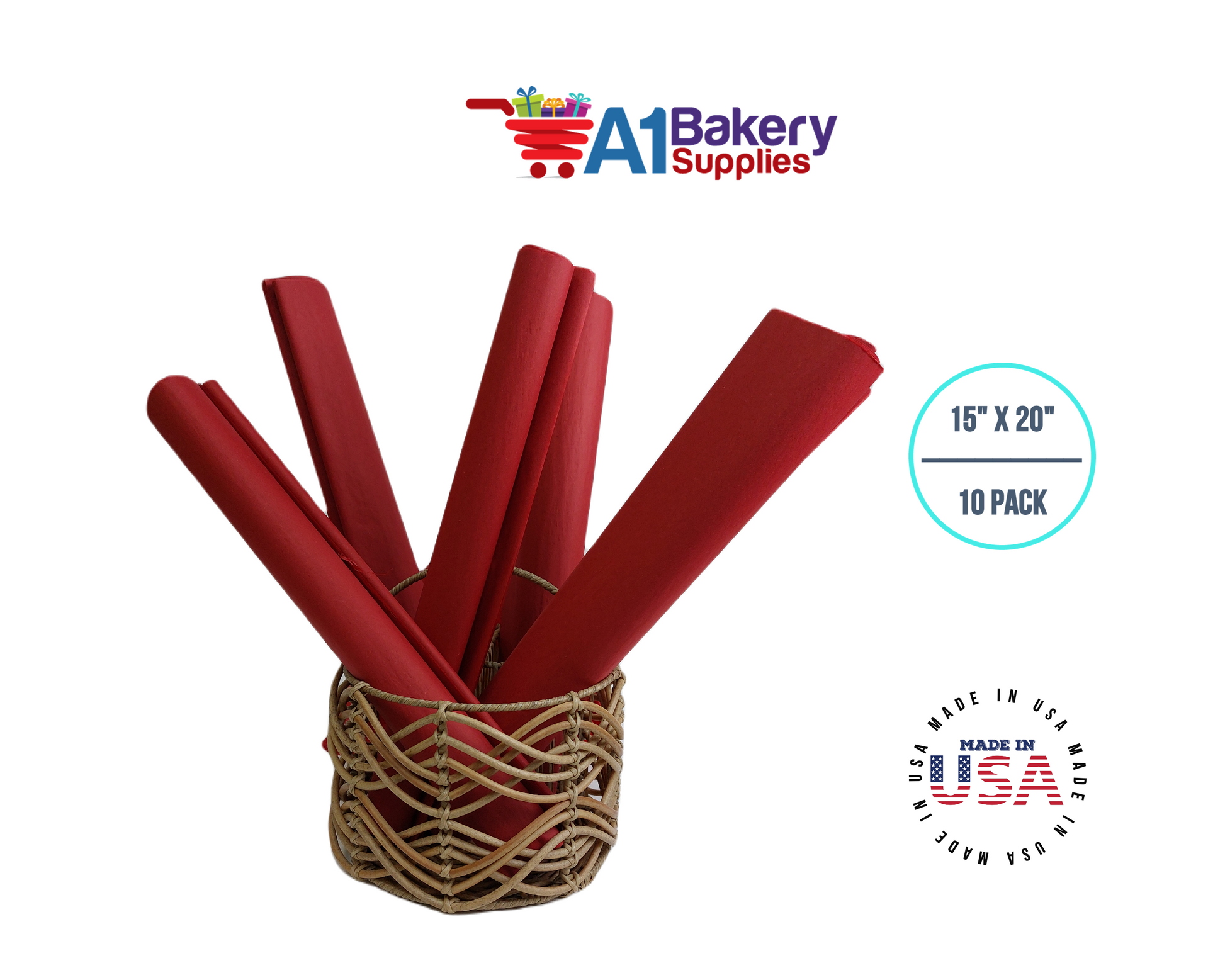 Scarlet Red Tissue Paper Squares, Bulk 10 Sheets, Premium Gift Wrap and Art Supplies for Birthdays, Holidays, or Presents by A1BakerySupplies, small 15 Inch x 20 Inch