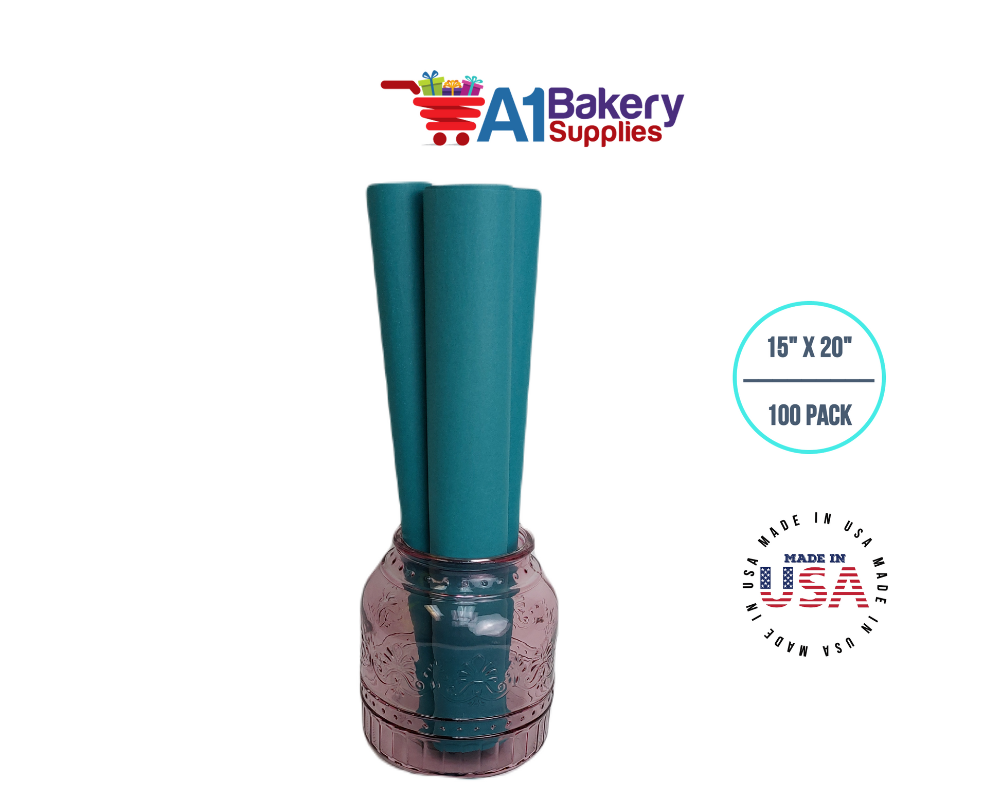 Teal Tissue Paper Squares, Bulk 100 Sheets, Premium Gift Wrap and Art Supplies for Birthdays, Holidays, or Presents by A1BakerySupplies, Medium 15 Inch x 20 Inch