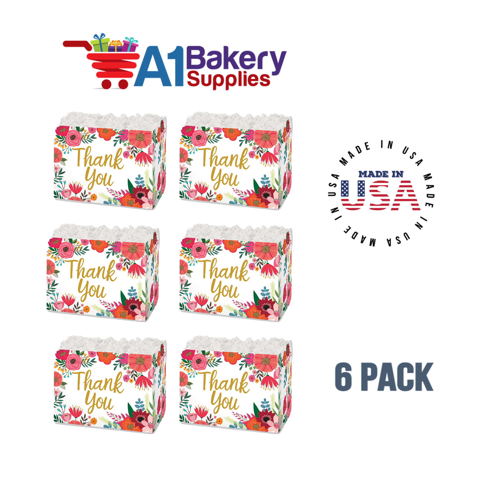- Each Box comes with totally 6 Pack Large Boxes. Each Thank You Flowers Basket Box Measures 10.25 (Length) x 6 (Width) x 7.5 (Height)